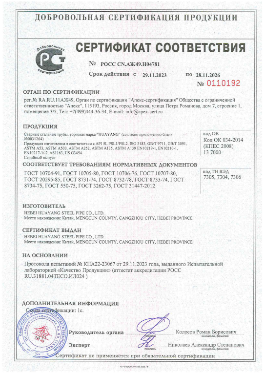 河北華洋鋼管有限公司公司創建于2005年,注冊資金5億元,公司占地面積1000余畝,固定資產12億元,年銷售收入近100億元,現有員工600余人。“華洋牌"高頻直焊鋼管被評為“河北省名牌產品”,年生產能力可達260萬噸,2024年河北華洋鋼管有限公司榮獲河北省百強民營企業(69位),河北省百強制造業(57位)榮譽稱號。